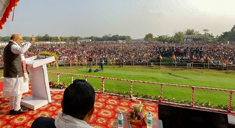LASHING Out the political parties for twisting and Opposing The Citizenship (Amendment ) Bill , 2016, in outside Parliament BJP’s National President Amit Shah Shah said the Bill will feature in the saffron party’s manifesto for the Lok Sabha polls. “We will get it passed in Rajya Sabha as well when we come to power in 2019. The Citizenship (Amendment) Bill is our commitment to the people of the country,” he said, adding, the Bill is the only way to safeguard the interest of the people of Assam. Participating part in the bhoomi poojan of the party’s new office in North Lakhimpur, he said “I want to tell the people of Assam and the Northeast that without the Citizenship (Amendment) Bill, development cannot be achieved.” This Bill is the only means through which “we can keep the demography of Assam intact and also safeguard our identity.” The BJP president alleged that the political parties without internal democracy do not deserve to rule the country. Referring to “the Nehru-Gandhi family, he alleged that it is stubbornly opposed to internal democracy in the family run organisation but is never tired of speaking of democracy. Chief Minister Sarbananda Sonowal, Finance Minister Himanta Biswa Sarma and senior leaders of the party were also present on the occasion. The results of three autonomous council polls held in Assam recently were a verdict for the Citizenship (Amendment) Bill, 2016, Shah said. The Bill will be brought again by Prime Minister Narendra Modi to make it a law. Addressing a huge rally organised by the Bharatiya Janata Yuva Manch, the youth wing of the BJP, at Chandmari near Lilabari airport on the outskirts of North Lakhimpur, Shah said the people in Assam has given a befitting reply to those who opposed the citizenship Bill. The Bill would be brought again to end infiltration. “Every single infiltrator will be pushed out from Assam if the BJP returns to power this time.”The BJP president came down heavily against the Congress and AGP for opposing the citizenship Bill and doing nothing to implement the Assam Accord. He also claimed that the NRC work was the result of his party’s initiative. Giving a report card of the Narendra Modi-led NDA government, Shah said it had given Rs 155,000 crore to Assam under the 14th Finance Commission as compared to Rs 89,000 crore given by the earlier UPA government. He also appealed to the youth to vote for the BJP in the coming Lok Sabha polls for development and to strengthen the 133 schemes undertaken by PM Modi.The youth rally that began with tributes to the martyred CRPF personnel in Jammu and Kashmir’s Pulwama district was earlier addressed by Chief Minister Sarbananda Sonowal. He stated that Assam would emerge as the best state in the country in the coming days for which the youth should take a special role. The Chief Minister urged the youth of the State to capture the market of Southeast Asia by virtue of skill development initiatives provided by the present government in each rural development block. Sonowal said the conferring of Bharat Ratna to Dr Bhupen Hazarika and Padma Shri to Uddhab Bharali and Dr Ilias Ali was the recognition for their works and acts. He also appealed to the youth to labour hard to make the fertile soil of this land worthy. The youth rally was also addressed by State Finance Minister Himanta Biswa Sarma who asked the youth to work for development, thus preventing Assam from becoming a Kashmir. He slammed the AASU and other like-minded organisations for supporting the neo-Assamese and appealed to the youth not to yield to them. The rally was attended by BJP national general secretary Ram Madhav, BJP Assam in-charge Mahendra Singh, State BJP president Ranjeet Kumar Dass, State ministers Tapan Gogoi, Naba Kumar Doley, Pallab Lochan Das and Pijush Hazarika, besides MPs from Lakhimpur, Tezpur, Mangaldai and Jorhat, and MLAs from Dhemaji and Bihpuria.State BJYM president Anupam Barman also addressed the rally. Himanta Biswa Sarma said the CAB will prevent Assam from being the second Kashmir.The former Congress leader is passionately pleading for the passage of the bill by Parliament in the interest of the North-east.