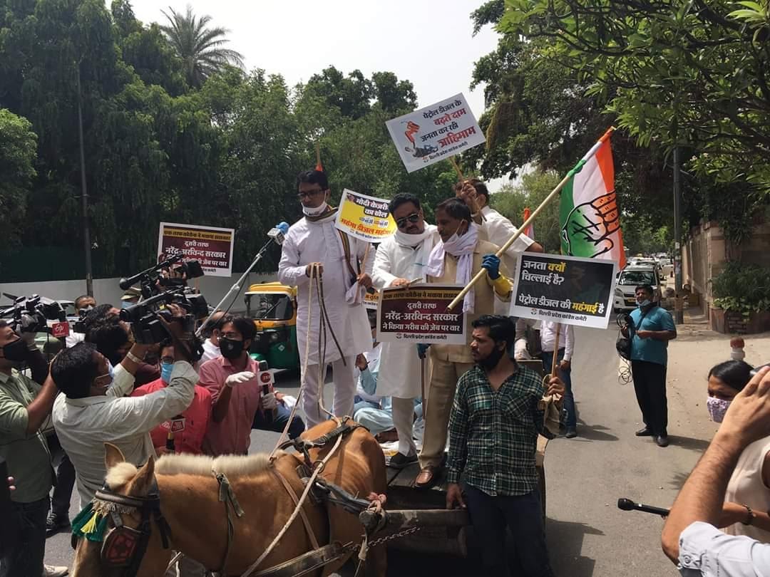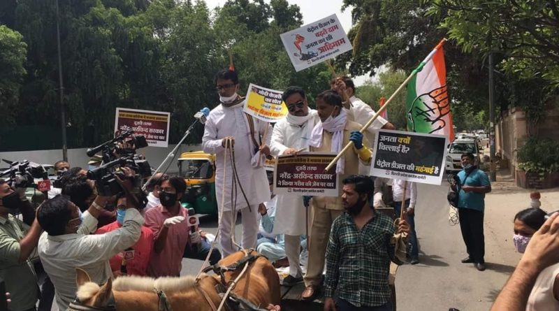 CONGRESS activists protested against fuel price hike, AICC President Sonia Gandhi demands rolling back excessive increased prices of petrol, diesel