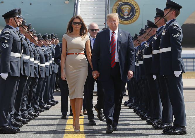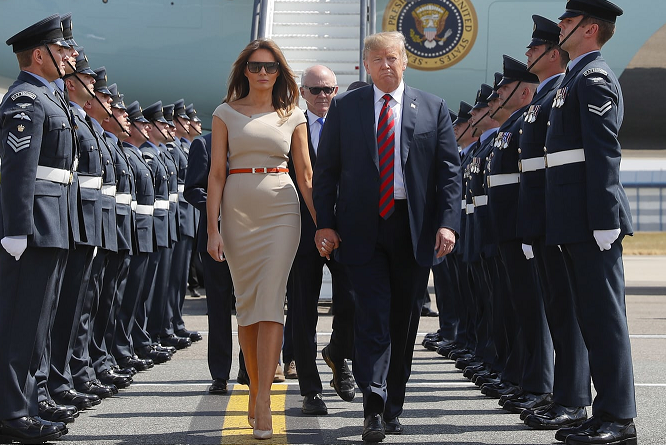 US President Donald Trump, who accompanied by his country’s first lady Melania arrived in the United Kingdom on Thursday on a working visit, was greeted in historic Blenheim Palace by UK Prime Minister Theresa May. The POTUS and Melania were entertained at a black-tie dinner with select 150 invited guests. For black-tie dinner, the invitees wear formal dress wearing of black tie is mandatory for male guests. Trump is the 12th US President to visit the country days after he said the UK was in “turmoil”. Protesters gathered outside the US ambassador’s residence in London where the Trumps stayed the first night, and near Blenheim Palace. They were venting their ire over his what they call inhuman immigration policy. Extra security was put in place to ensure that law and order was not disturbed as maverick Trump has said that Britons “like me a lot” and that he feels “fine” about any such protests. Trump will interact with the UK’s business sector such as financial services, travel, creative industries, food and drink, engineering, tech, infrastructure, pharmaceuticals and defence. Downing Street has gone on record saying that the Thursday’s dinner at the birth place of Britain’s War-time Prime Minister Winston Churchill was intended to celebrate the strong business ties between the two countries at a time when the UK is hoping to initial a free trade deal with the United States post Brexit .Incidentally, in both the nations across the Atlantic have strong and vociferous pro-immigration lobbies. Guardian reports before commencing his UK visit, Trump in an interview hailed Boris Johnson, Theresa May’s principal political opponent, as a future prime minister and accused the London mayor, Sadiq Khan, of failure to battle terrorism. He says there has been too much immigration in Europe angering many Britons. Political analysts are baffled as to why POTUS had endorsed PM May’s political opponent as future PM .The Tory MP recently resigned from May’s cabinet in protest at her Brexit policy. Trump described Johnson as “a very talented guy” for whom he had “a lot of respect”. He claimed he was not trying to pit Johnson against his host, but added: “I am just saying I think he would be a great prime minister. I think he’s got what it takes.”May’s reaction is not known.