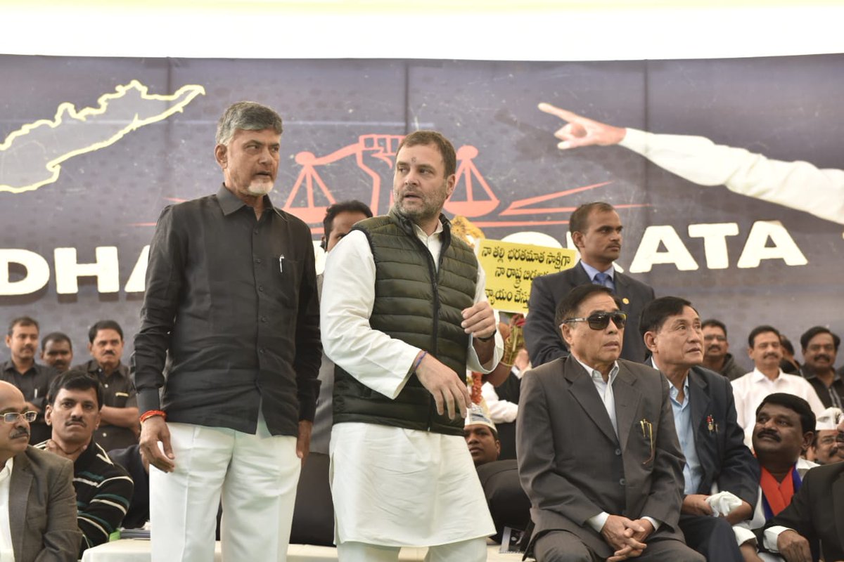 AICC President Rahul Gandhi, former Jammu and Kashmir Chief Minister Farooq Abdullah, Delhi CM Arvind Kejriwal and other Opposition leaders met Andhra Pradesh Chief Minister Nara Chandrababu Naidu who commenced fast in New Delhi’s Andhra Pradesh Bhavan’ premises on Monday seeking special category status for the state and fulfilment of assurances given at the time of the state’s bifurcation of Andhra Pradesh. Rahul Gandhi and other opposition leaders supported his cause. The Chief Minister observed the fast from 8 am and will submit a memorandum to the President of India on February 12. Prime Minister Narendra Modi failed to mention the long-pending demand of the people of AP on the special category and state bifurcation assurances during his address in Guntur on Sunday. This seems to have annoyed the masses and thousands of people thronged the main roads of both Vijayawada and Guntur, along the route from the airport, and staged protests sporting black clothes and carrying empty black pots and waving ‘Modi Go Home’ placards. BJP leaders who were expecting the PM to announce some concessions to the state are said to be disappointed as the PM did not mention the above two demands. Reacting to PM Modi’s scathing attack on him the Chief Minister said BJP leaders should understand the ire of people towards the Central government, which has failed to fulfil the assurances given at the time the state was bifurcated. The Chief Minister said he had appealed to the Telugu people to stage silent protests during the visit of the Prime Minister and dismissed allegations of BJP leaders that the TDP government tried to create hurdles for holding the PM’s rally. The Chief Minister has participated in Dharma Porata Deeksha in 11 districts of AP before moving to its venue to New Delhi. He observed the fast after paying tributes to Mahatma Gandhi’s statue at Raj Ghat and BR Ambedkar’s statue at AP Bhavan. Leaders of several opposition parties extended their solidarity to the CM’s protest. In October 2013, Mr Naidu had gone on an indefinite fast at AP Bhavan to demand equal justice for both regions, and had been forcibly shifted to Ram Manohar Lohia Hospital on the fifth day after his health was said to be deteriorating. He also observed a fast on his birthday last year in Vijayawada demanding fulfilment of the state bifurcation assurances. Earlier, he had quit the NDA protesting against not granting special status to Andhra Pradesh as the Government repeatedly claimed that more funds have been provided than mandated under a special category state.