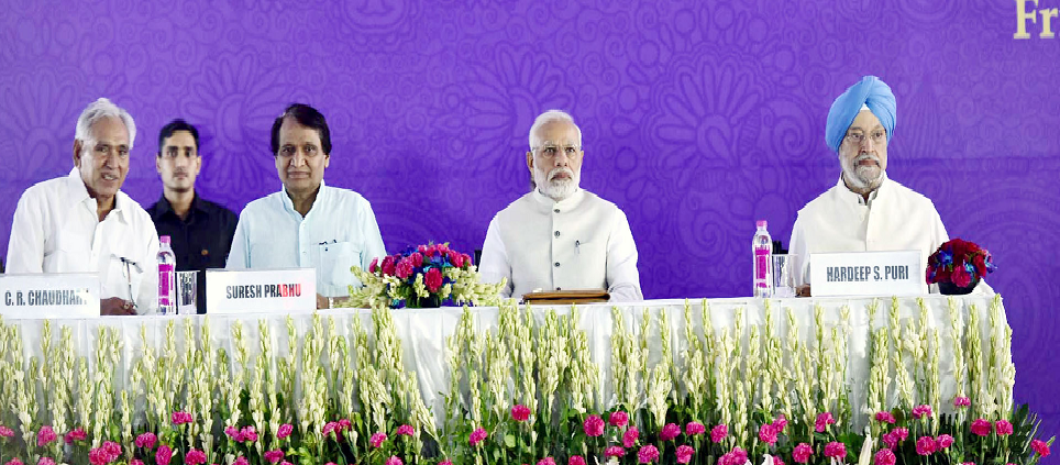 PRIME Minister Narendra Modi has called achieving double-digit GDP growth to challenge the USD 5 trillion economies and doubling India’s share in world trade to make the country economically stronger. Addressing a gathering after laying the foundation stone of a new office complex of the Ministry of Commerce Vanijya Bhawan in Delhi, PM said his government has taken several initiatives in easing the process of doing business in India. Foreign Direct Investment inflows in India and foreign exchange reserves are at record highs, he said. We have ensured macroeconomic indicators like current account deficit (CAD) does not cross the Lakshman Rekha.India’s GDP growth touched 7.7 per cent in the last quarter of 2017-18 Financial Year. Time has come to look beyond 7-8 per cent growth and target double-digit expansion, PM Modi said. It will not be a Himalayan task if all concerned worked in this direction, he added. The world, he said, is watching as to when India will break into the USD 5 trillion economy club by doubling its economy. India must try to reduce dependence on imports of crude oil at the cost of vital foreign exchange outgo. For this purpose, we have increase domestic manufacturing. He said the country has moved away from a culture of delaying work through ‘atkana, latkana and bhatkana’ meaning obstructing, delaying and misguiding. The Goods and Services Tax (GST), which replaced over a dozen indirect taxes from July 1 last year, has led to not just ease of doing business but also increased tax base benefitting  national economy .For instance, ,PM said  54 lakh new taxpayers have sought registration under the GST regime totalling the number of indirect tax payers to over ten million in India compared to six million indirect tax payers in pre-GST era. Foreign direct investment inflows as well as foreign exchange reserves are at record highs, he added. The Prime Minister expressed confidence that the building will be completed well within the stipulated time. He emphasized that this would be in keeping with the spirit of New India, and moving away from old practices, under which important building projects, even in the Capital, had been inordinately delayed. In this context, he mentioned the Dr. Ambedkar International Centre, the Dr. Ambedkar National Memorial, the Pravasi Bharatiya Kendra and the new office building for the Central Information Commission. He said that this is also the result of breaking silos within the working of the Government. He hoped that the new office building – Vanijya Bhawan – would further facilitate elimination of silos in India’s commerce sector. Speaking about the country’s demographic dividend, the Prime Minister said that it is our collective responsibility to fulfil the aspirations of our youth. Talking of adoption of digital technology, the Prime Minister remarked that the land, on which the new building is being constructed, was earlier occupied by the Directorate General of Supplies and Disposal. This has now been replaced by the Government e-Marketplace which has seen transactions worth Rs. 8700 crore in a short time, he added. He urged the Department of Commerce to work towards further expansion of GeM, and leverage it for the benefit of the country’s MSME sector. He also spoke of the benefits of GST, and said the Union Government is making constant efforts to create a people-friendly, development-friendly and investment-friendly environment. The Prime Minister mentioned various macro-economic parameters, and other indicators to explain how the India is now playing an important role in the global economy. He said India is now among the top five fin-tech countries, globally. He said subjects such as “Ease of Trading,” and “Ease of Doing Business,” are all related to “Ease of Living” in an interconnected world. The Prime Minister emphasized the need for an increase in exports, and said that States must be made active partners in this effort. He said the Department of Commerce must resolve to raise India’s share in total global exports to at least 3.4 percent, from the current 1.6 percent. Similarly he said, efforts must be made to raise domestic manufacturing output, to reduce imports. In this context, he gave the example of electronics manufacturing. He said the Union Government has taken a number of steps to boost domestic manufacturing.