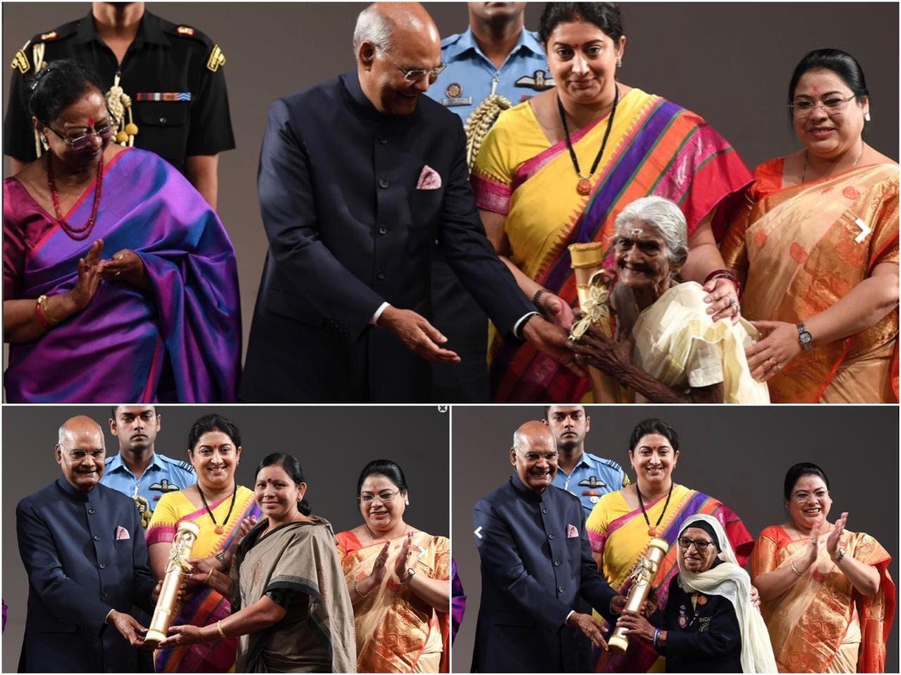President Ram Nath Kovind gave away the Nari Shakti Puraskar to 15 women in Rashtrapati Bhawan on the occasion of International Women’s Day on Sunday, March 08. The awardees are 103 year old athlete Mann Kaur, Indian Air Force’s first women fighter pilots Mohana Singh, Bhawana Kanth and Avani Chaturvedi, Farmers Padala Bhudevi and Bina Devi, Artisan Arifa Jaan, Environmentalist Chami Murmu, Entrepreneur Nilza Wangmo, Automotive research professional Rashmi Urdhwardeshe, Lady Mason Kalavati Devi, Twin Mountaineers Tashi and Nungshi Malik classical vocalist Kaushiki Chakroborty and 98 year old Karthyayini Amma who topped the literacy exam in 2018. Another awardee 105 year old Bhageerathi Amma could not travel to Delhi to recieve the award. The National Award is given annually to individuals, groups, institutions in recognition of their exceptional work towards the cause of women empowerment, especially for vulnerable and marginalized women. Prime Minister Narendra Modi will interact with the Nari Shakti Awardees at his residence.PM earlier allowed seven women to handle his social media accounts to covey their thoughts on the International Women’s Day.